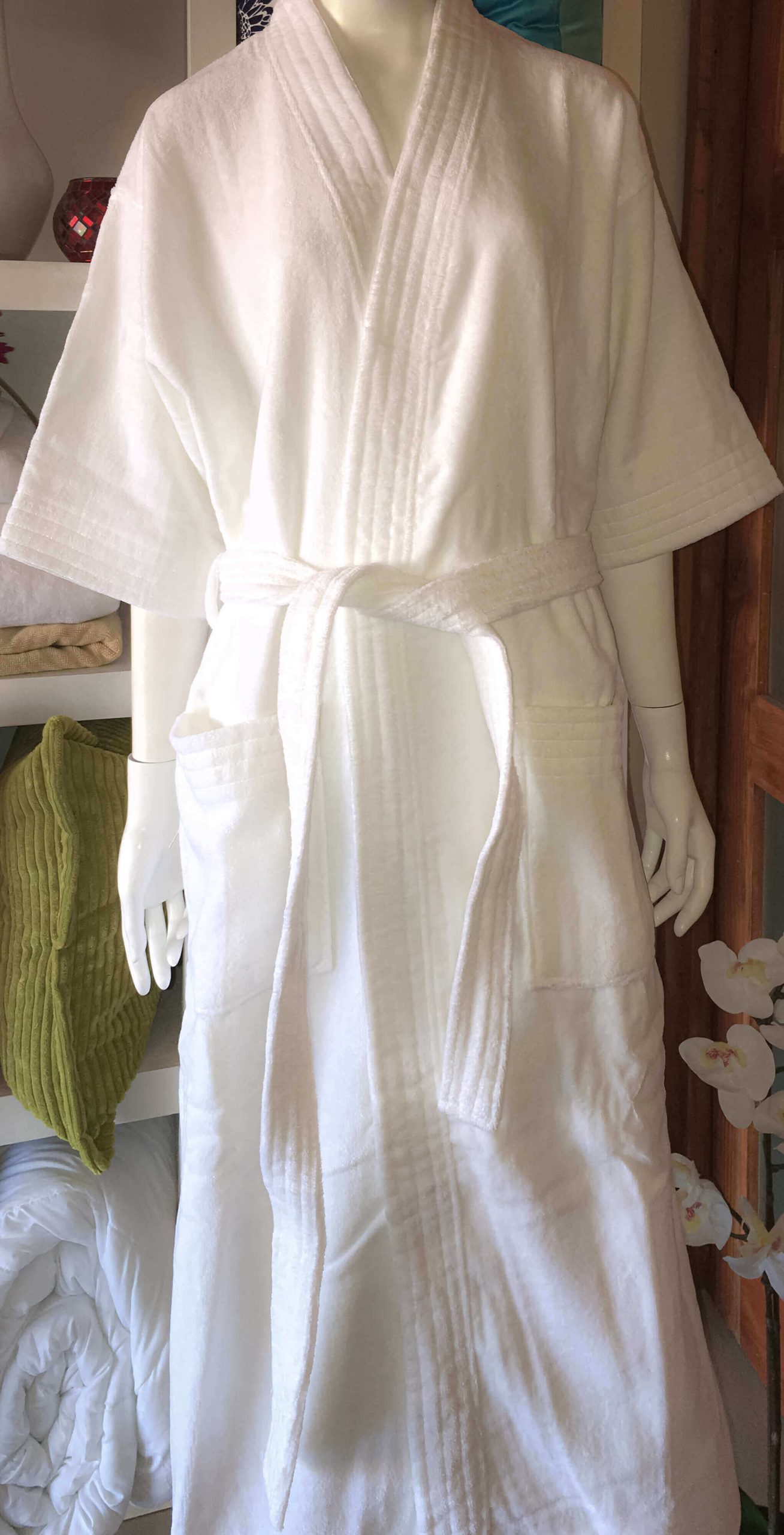 100% Algodón 132L cm / 56 cm Manga Opcional: Piping y Bordado